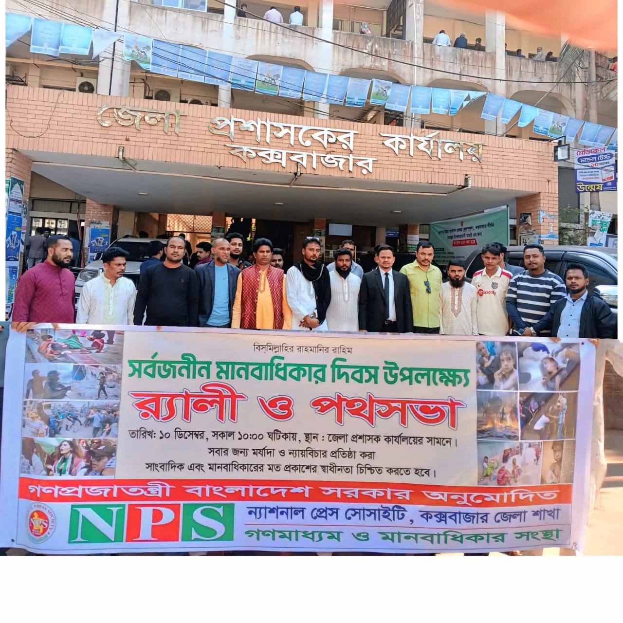 সর্বজনীন মানবাধিকার দিবস উপলক্ষে কক্সবাজার জেলা প্রশাসক কার্যালয়ের সামনে আজ ১০ ডিসেম্বর সকালে একটি র্যালি ও পথসভা অনুষ্ঠিত হয়েছে। সকাল ১০টায় শুরু হওয়া এই কর্মসূচিতে সাংবাদিক, মানবাধিকারকর্মী, সমাজের বিভিন্ন শ্রেণি–পেশার মানুষ এবং তরুণ প্রতিনিধিরা অংশ নেন।